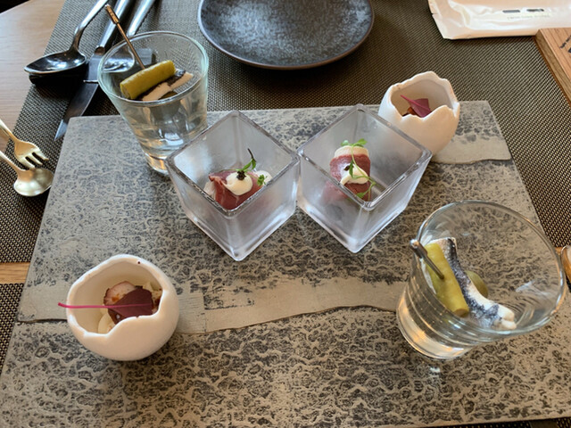 今日は初めて長めのコースではなく軽めのランチ(税込2500円)にしてみた。ドリンクやらピンチョスも一緒のセットになっている。