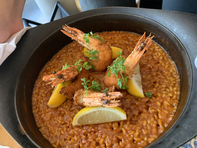〆は前回は2種の細麺パスタで作られたフィディア(カタルーニャ語で「パスタで作るパエリア」)。だったが、今回は選択肢はなく「お米のパエリア」。ちょうど前回と違うものの方が良いなぁ、と思っていたので良かった(ファディアももちろん好きなのだが、ちょっと変えたいと思ったので)パエリアらしく米に少し芯が残って美味。