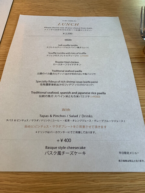 オプションで「バスク風チーズケーキ(税込400円)」も用意されていたが、昨日もバスチー食べたし、別のカフェに河岸を変えてデザートを食べようとパスしてしまった。申し訳ない。