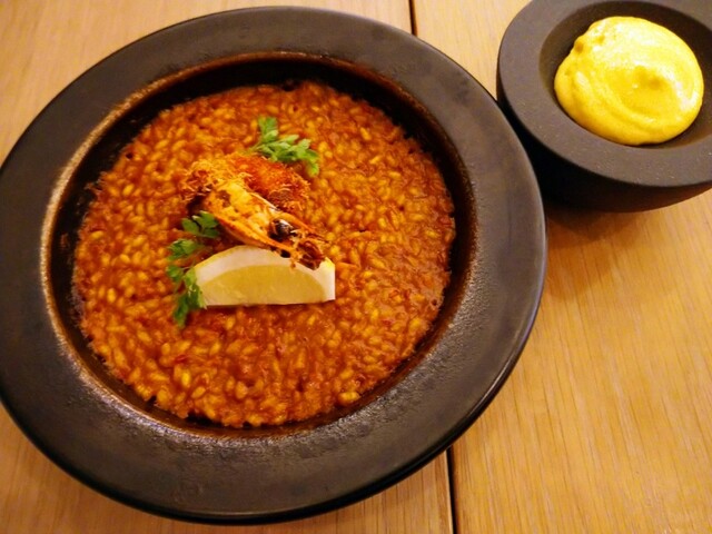 パエリヤ 2500円 スペシャリテの 海老の旨みが凝縮したパエリヤ マヨネーズもふわふわ