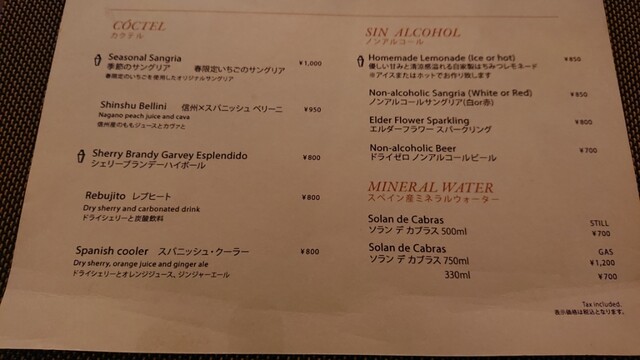 その他にスペイン☓信州4杯5,000円、プレミアム5杯8,000円、ノンアル4種2,000円のペアリングを頼むことも出来ました♪