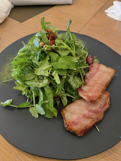 イベリコ豚ベーコン炙りとクレソン野菜のサラダ