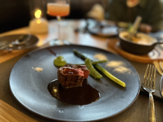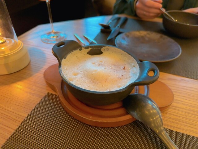 パエリアが雑炊のようなパエリアで濃厚で美味しかったです❕味は濃いめです❕鍋で運ばれてきましたが、美味しすぎてあっという間に完食してしまいました。コース料理全体的にとっても美味しいのですが、量が多すぎて、デザートは結構苦しかったです。でも本当に美味しかったので、また軽井沢に来た際は伺いたいです。