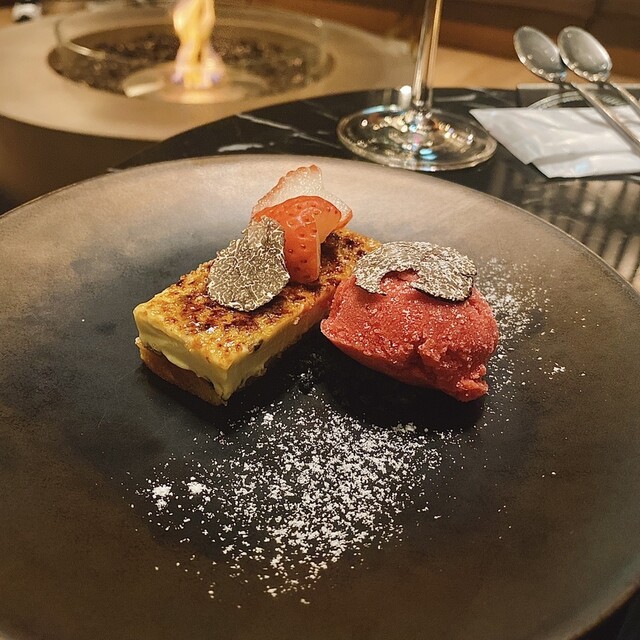 デザートは席を移動して暖炉の炎を見ながら落ち着いた時間を過ごせました。