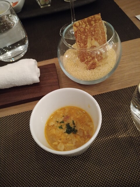 ピンチョスのブリは味がぼやけていたけど、スープもコカもコース料理への期待感が膨らんでいきます。