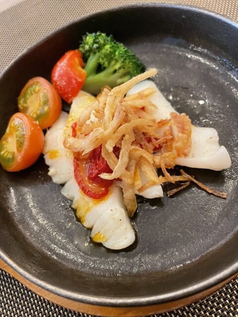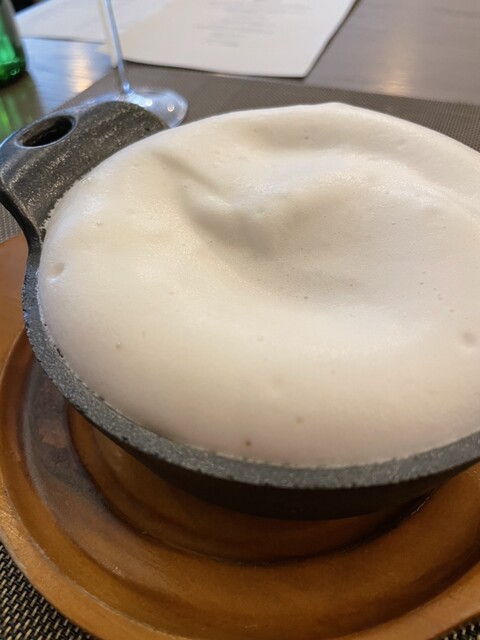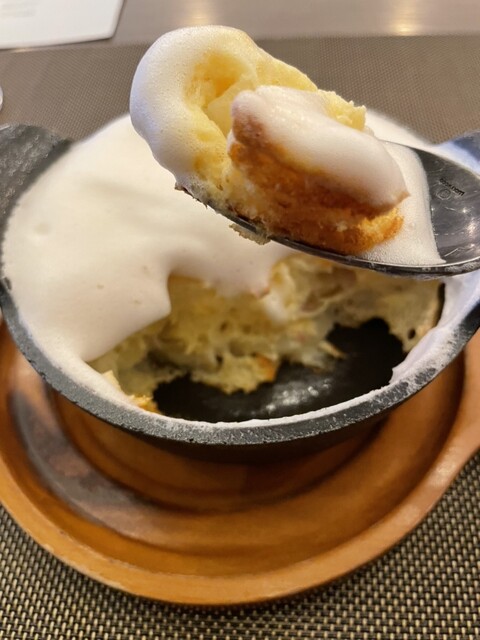 ふわふわの泡が乗ったオムレツは玉ねぎ、ハムなどの塩味と泡の出汁が味わい深く夢中になって食べてしまいました。