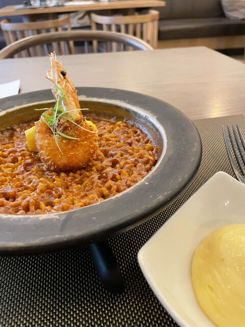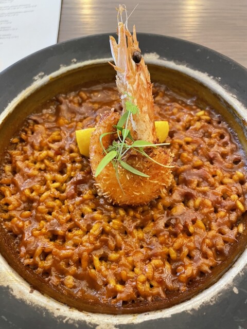 パエリアは主役感たっぷりの海老フライがレモンに鎮座されており、正月だからかなんか縁起物に見えてかわいかったです。もちろん味も美味しい‼︎