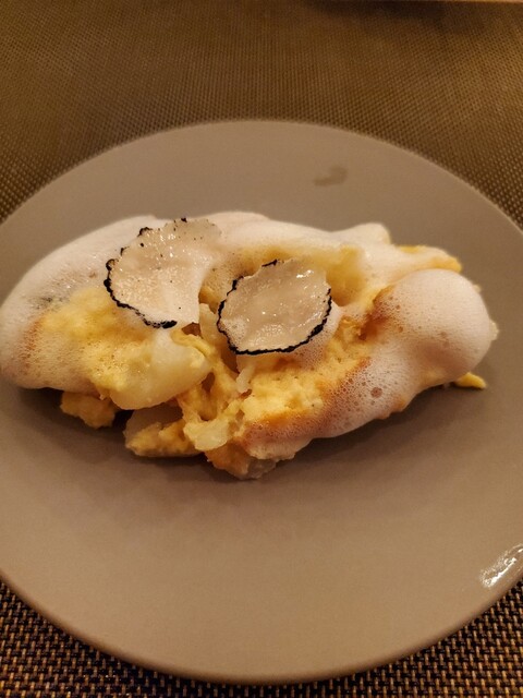フワフワですオムレツの上にはトリュフがのって香も楽しむ。