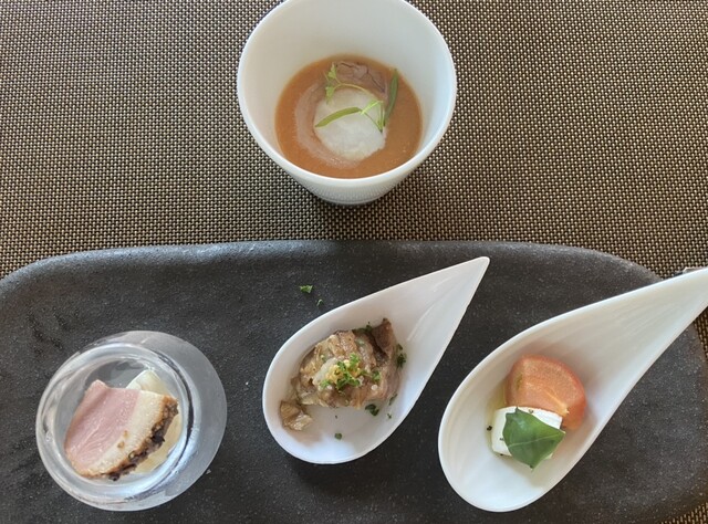 ココナッツのシャーベットが入ったガスパチョが美味しかったです。