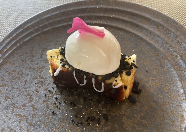 炭のクッキー、チーズのアイスが乗っていてとても美味しいデザートでした。
