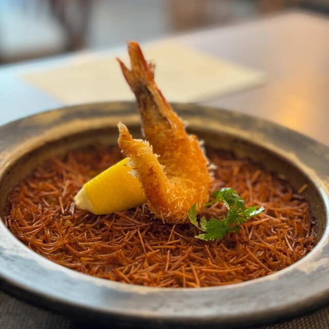 パスタのパエリアというがエビのみ乗ってる。マヨはニンニク入りらしいがさほどの感じでもない、パンチのなさ。