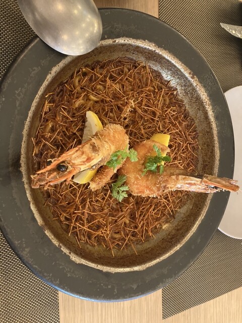 コースです。コースですが、大半のものがシェア形式で提供されたことは少々残念でした。しかし、サラダやパエリアが凝っており、楽しかったです。店内、座席感覚が広い点は良いのですが、子連れが多くムードはありませんでした。