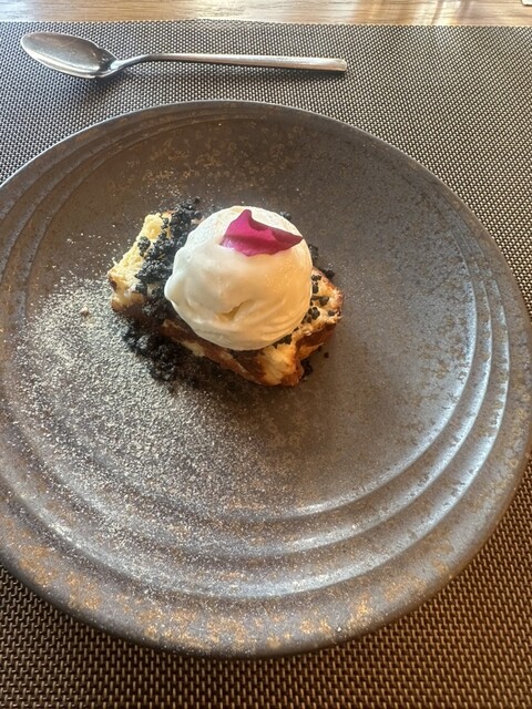 ケーキがしっとりしていてチーズが濃厚でした。アイスは出来立てで甘さがありケーキに合っていました。