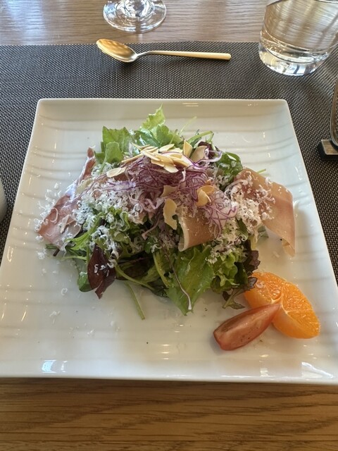 熟成したハムは塩味がありシャキシャキのサラダと相性がいい。