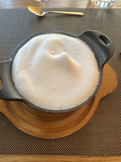 ふわふわのスフレはやや甘く、メレンゲも口当たりが良いです。食感飽きしないよう所々にジャガイモがあるのも好感が持てます。