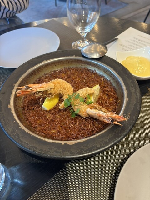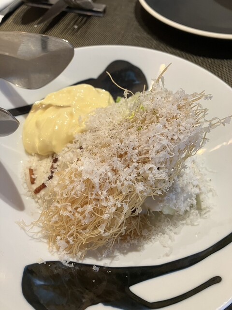 、濃厚海老出汁のフィデワ( パスタのパエリヤ)、デザートはバスクチーズケーキでした。どれも味付けが美味しく、お酒も進みます。特にリトルジェムレタスのサラダは、カニミソクリームとオリジナルのマヨネーズがマッチしてとても美味しかったです。パスタのパエリヤは初めていただきましたが、食感が良く、新感覚でした。4,500円で量、味、サービスどれも良く、コスパ最高だと思います。結構満腹になりましたので、お腹を空かせて行ってください♫