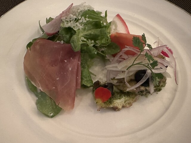 タパスに出てきた生ハム。これは何度でも食べたいレベル。サクサク、パリパリにオーブンで乾燥させたものがクスクスの上に乗せられて出てきました。こんな食べ方があるんだ〜と。これなら自分でもうまく作れる日が来るかもしれない。