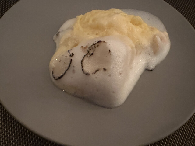特に美味しかったのが、黒トリュフのスフレトルティージャ。マドリードにはないメニューで日本オリジナルだそうです。というのも、隠し味にお味噌(確か西京味噌だったかと。。。覚えていたのにメモしておらず)が使われているということなのです。ガツンと黒トリュフが主張するふわふわスフレオムレツ。オムレツは(海老出汁かな?)の旨みがあり、その奥で味噌が奏でるというハーモニーが絶妙でした。