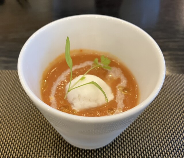 まず出されたガスパチョ(冷製スープ)が、とても美味しい。