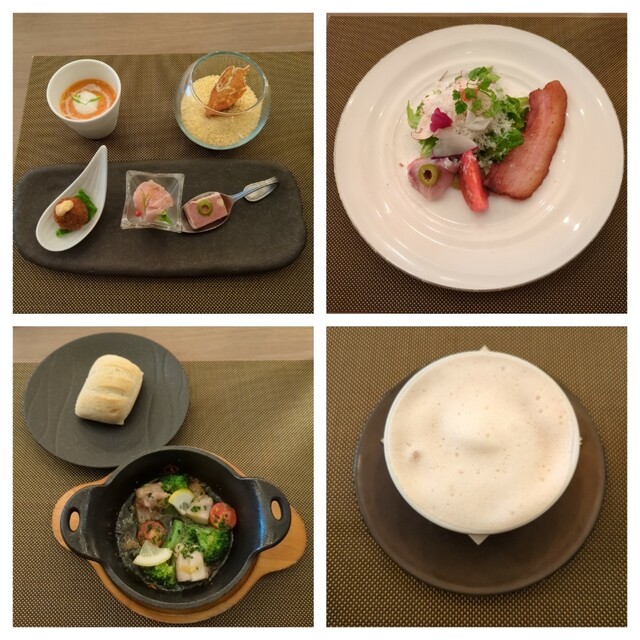 酸味のあるトマトのガスパチョに、鹿肉クロケットなどの一口サイズおつまみからスタート。