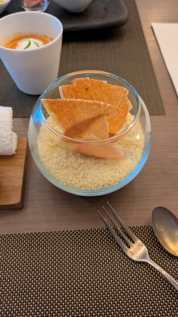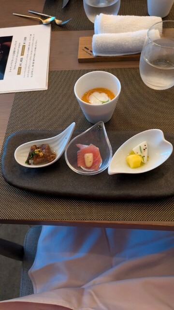 少量多品目のコースはさまざまな色合い、もりつけ、食感を楽しむことが出来、軽井沢の最後を飾るのにふさわしい食事でした。