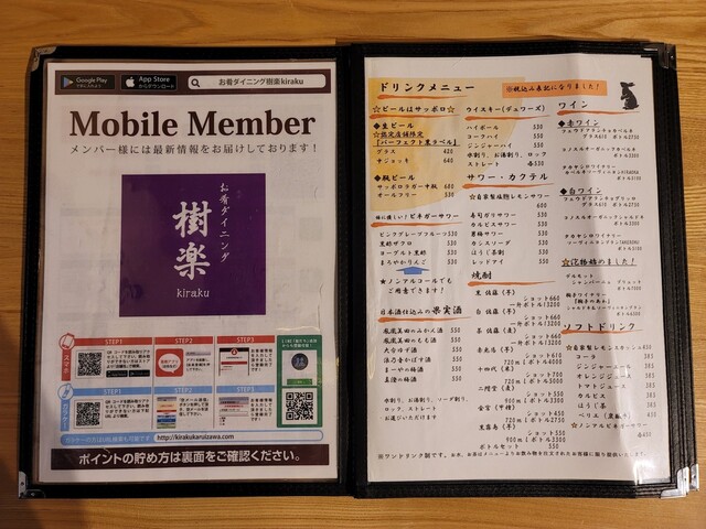 今日もきらく~な一杯を!お1人様から気軽に楽しめる小皿料理の和創作居酒屋です。金沢の網元と直接契約し、漁れたて『きときと』の旬の魚をご提供致します。店主こだわりの日本酒は軽井沢最大級の品揃え!他のお飲物も勿論ございます!コース料理は毎日お客様に合わせてお作りしていますので、アレルギー、召しあがれない食材なども、まずはお電話でご相談ください。 |