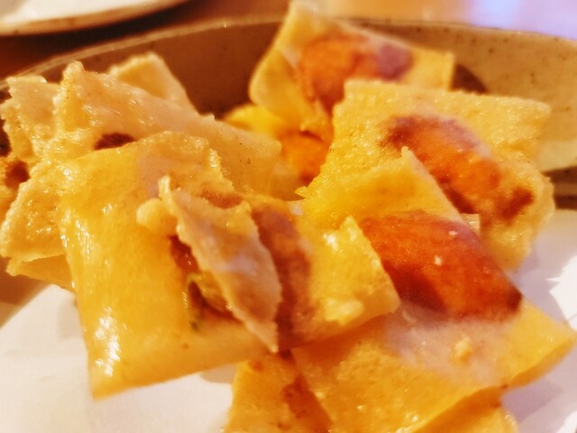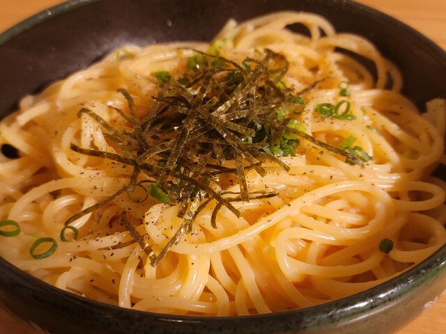 - 結構お腹が膨れた状態で頼んだ明太子パスタ。これもまた、居酒屋あるあるが考慮されている一品に思いました。ご飯ものって、こってりが多い中、締めで頂いた明太子パスタ。品的にはこってりなはずなんですが、不思議と優しい味。これは即席のモノでは出せない味。しっかりと考えられた味。締めでお腹いっぱいなのに、いくらでもイケそうな味わいにこれまた大満足させていただきました。