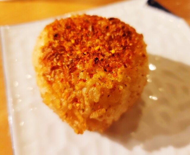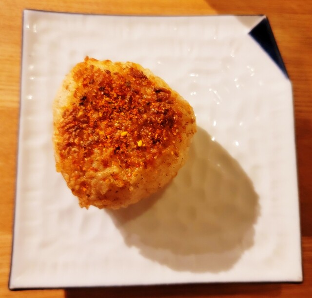 八幡屋磯五郎のピリ辛焼きおにぎり(300円)