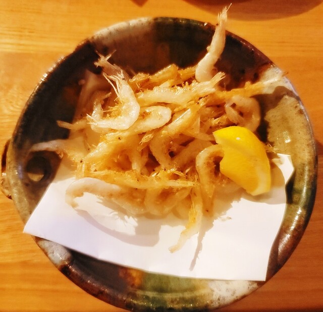 ・「白エビの唐揚げ(750円)」は、スナック菓子のようにサクサク食べれるおつまみに最適な一品。