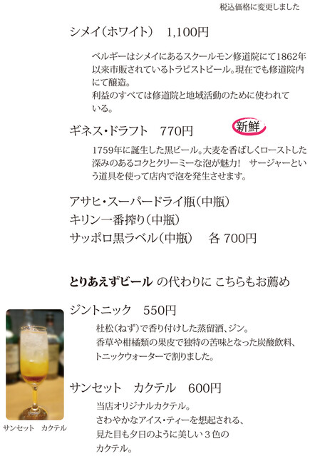 | ドリンク | 日本酒あり、焼酎あり、ワインあり、カクテルあり、日本酒にこだわる、焼酎にこだわる、ワインにこだわる、カクテルにこだわる |