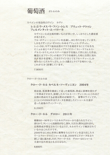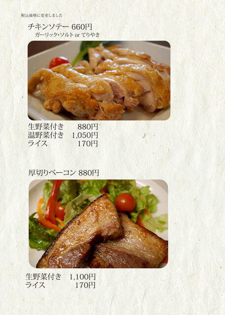 | 空間・設備 | 落ち着いた空間、カップルシートあり、カウンター席あり、座敷あり、電源あり、無料Wi-Fiあり、車椅子で入店可 |