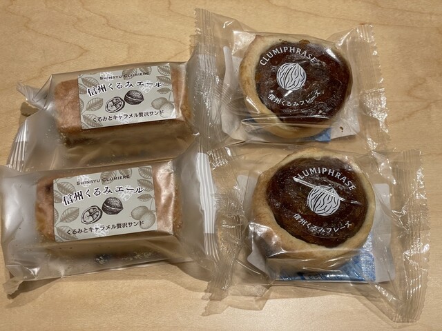 自分たちには「信州くるみエール」「信州くるみフレーズ」を購入。美味しかった。バラ売りのみで箱売りがなかったのが残念。