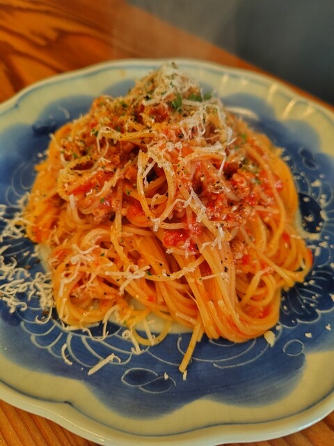 今日の日替わりランチはイワシのフライでした、、、昨日自宅でイワシを食べたのでオーダーはボロネーゼ@1100としました。