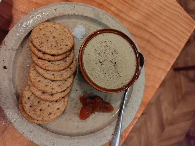 レバーパテにはクラッカーが付いておりレバー感のある美味しいパテ、かぶの肉巻きは6本で甘めの餡掛けでかぶと肉のバランスが最高でした。
