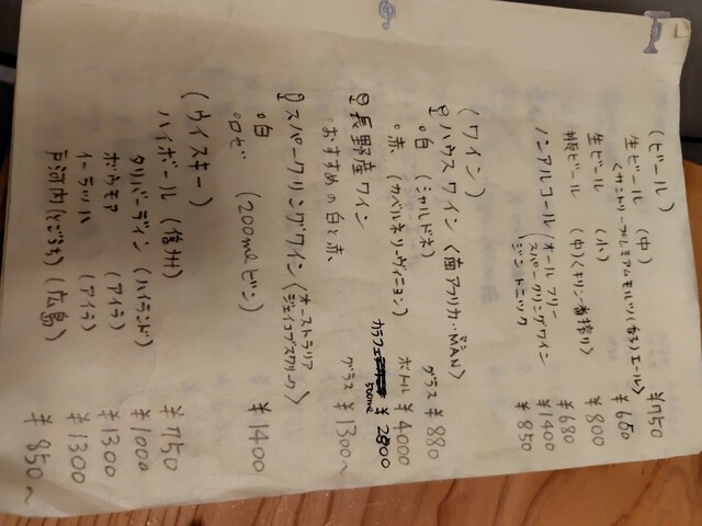 瓶ビール☓1、赤ワイン☓3、ポテトサラダ、バンバンジー、レバーパテ、かぶ肉巻き、まぐろアボカド、チキンカレーの美味しい料理を食べて、一万円以内はコスパ最強です