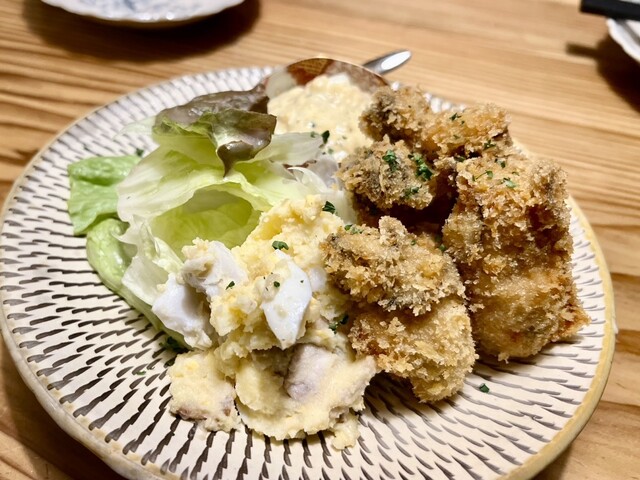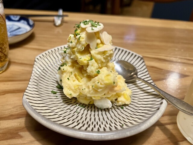 料理は『自家製ベーコンとたっぷり卵のポテトサラダ手作マヨネーズで』@6...
