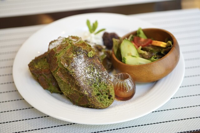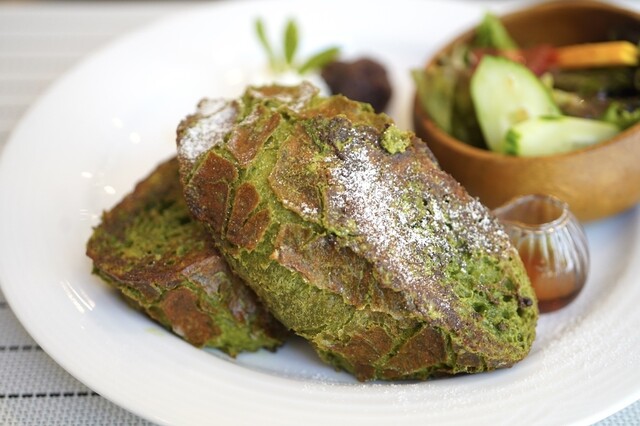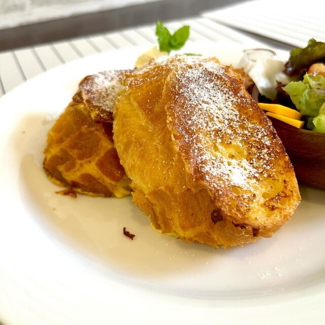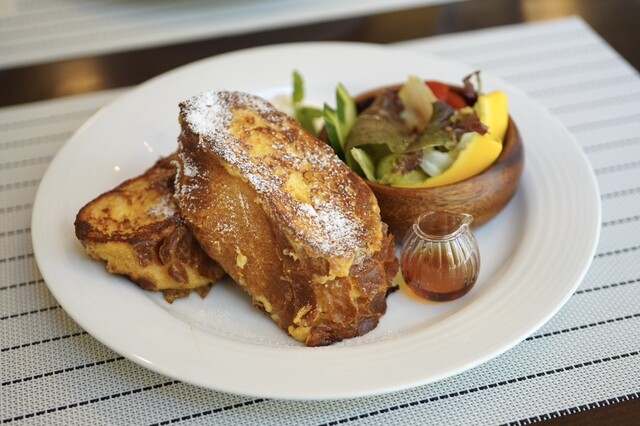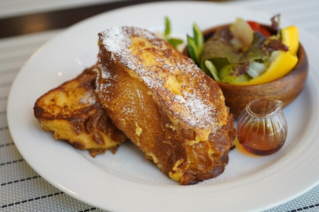 フレンチトーストは外はパリッとして、中はしっとり、甘さが控えめで、とても美味しい。