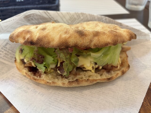 軽井沢パニーノとアイスコーヒーを頼み、2人でシェアしました。
