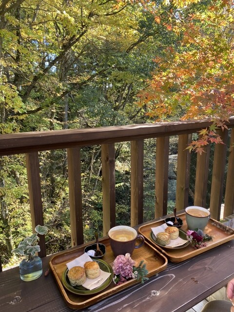 テラス席でせせらぎの音を聞きながら食べるドーナツは一段と美味しく感じました。