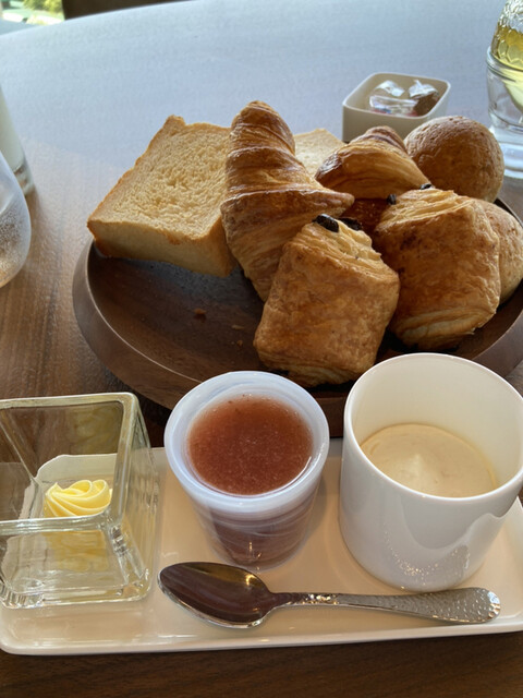 お腹いっぱいになりましたが美味しいので完食しました。朝食は、テラスで頂きました。スープも野菜たっぷりて美味しかったです。