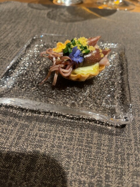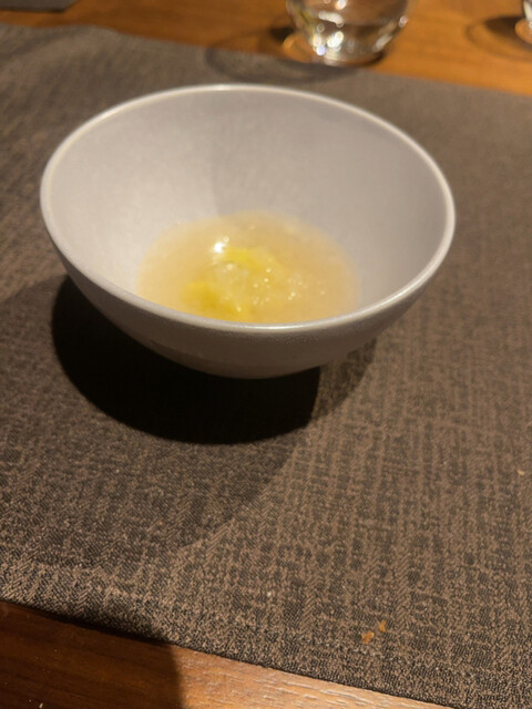 前菜のサヨリを「ふきのとう」を少し苦めの泡のようなソースで頂いたのですが、、、