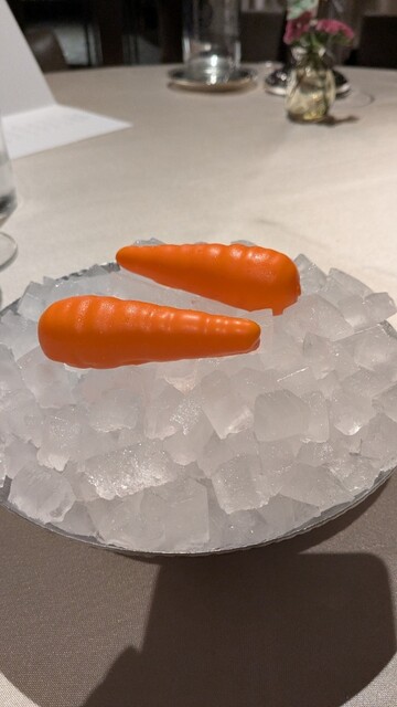 人参の形をしたムース、家の形の入れ物に入った小菓子など、遊び心があるメニューが多く楽しみながら美味しい食事が出来ました。