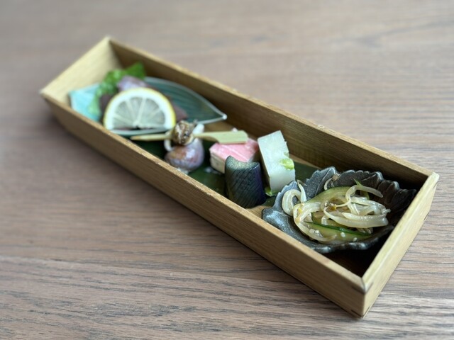 25種類のおうどんから選べるコースで、先付けの細うどん、オードブルウッドボックス、季節の逸品、天ぷらなど盛りだくさんの内容です(๑وÒ▽Ó)و