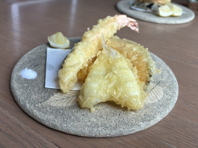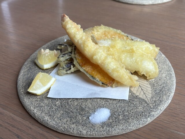 天ぷらはきす、海老、かぼちゃ、茄子とバリエーション豊かで、揚げたてサクサク。