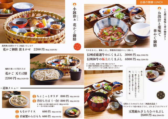 | ジャンル | 日本料理、そば、鉄板焼き |