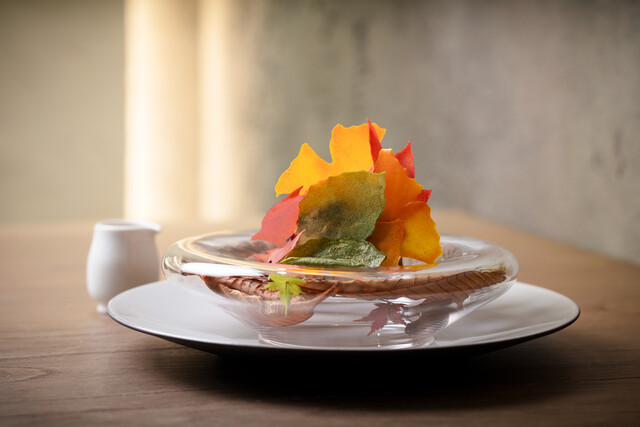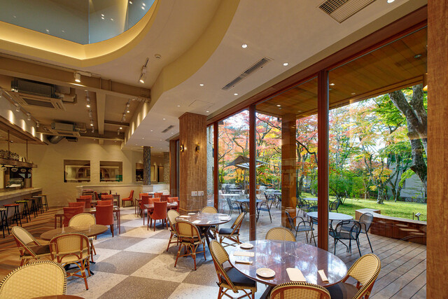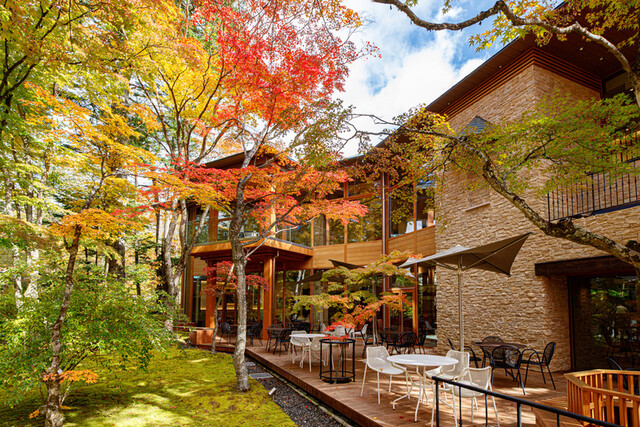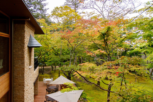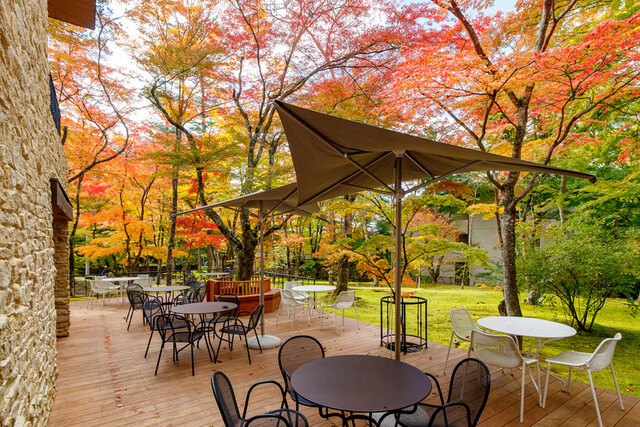色づいた木々を見ながらお食事ができるテラス席 (by お店)