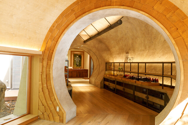 独特のシルエットは木を切ることなく建物を建てた証 (by お店)