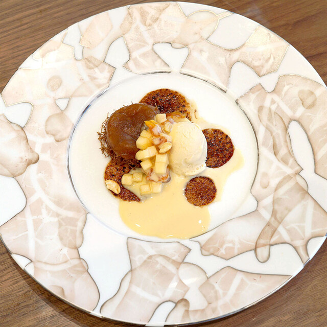 シナモン風味のカダイフと温かいグラニースミス⠀