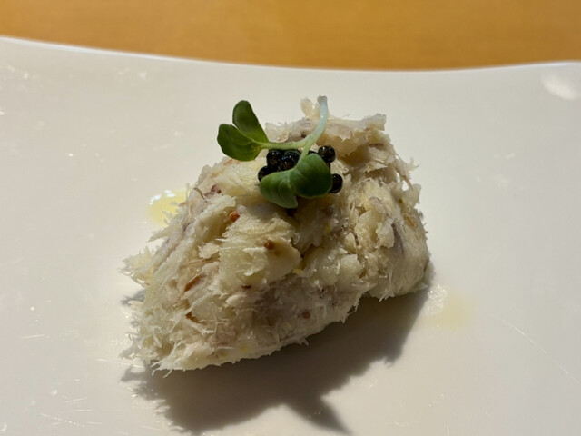 前菜はマッシュポテトにお魚が混ぜ込んであっ...