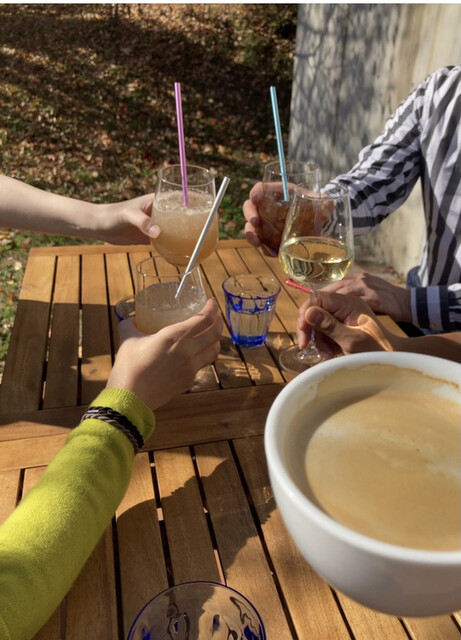 かんぱ〜い✨誰かひとりだけワイン飲んでますねー♪